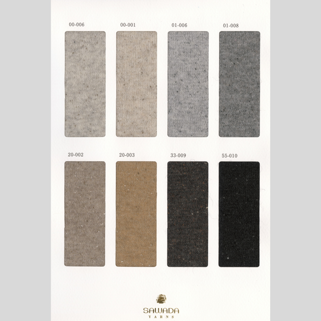 素材の混率、適正ゲージ、形状などの特徴に関しましては、下記素材販売ページよりご確認ください。